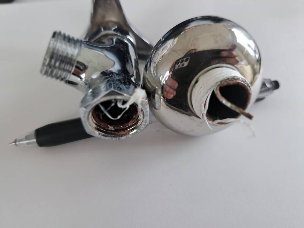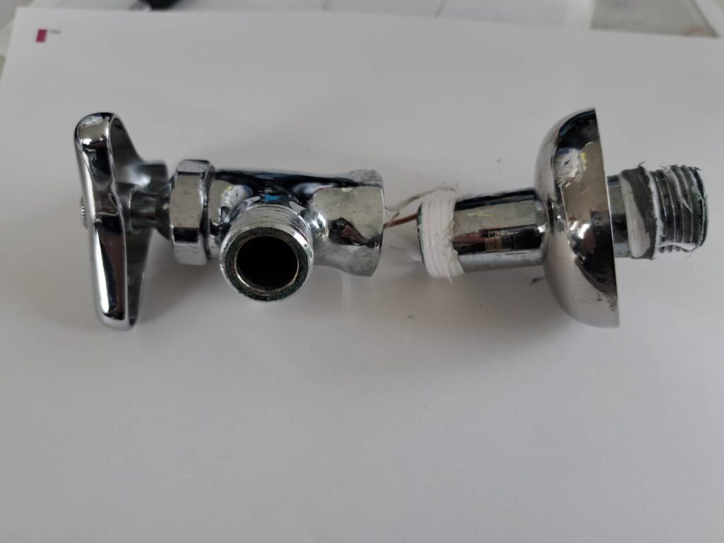 まずは止水するところから。湯水の止水栓を止める。希に給水管の劣化で折れて洪水になる場合が有るので、注意が必要です。出来れば水抜栓等で止められれば安心です。