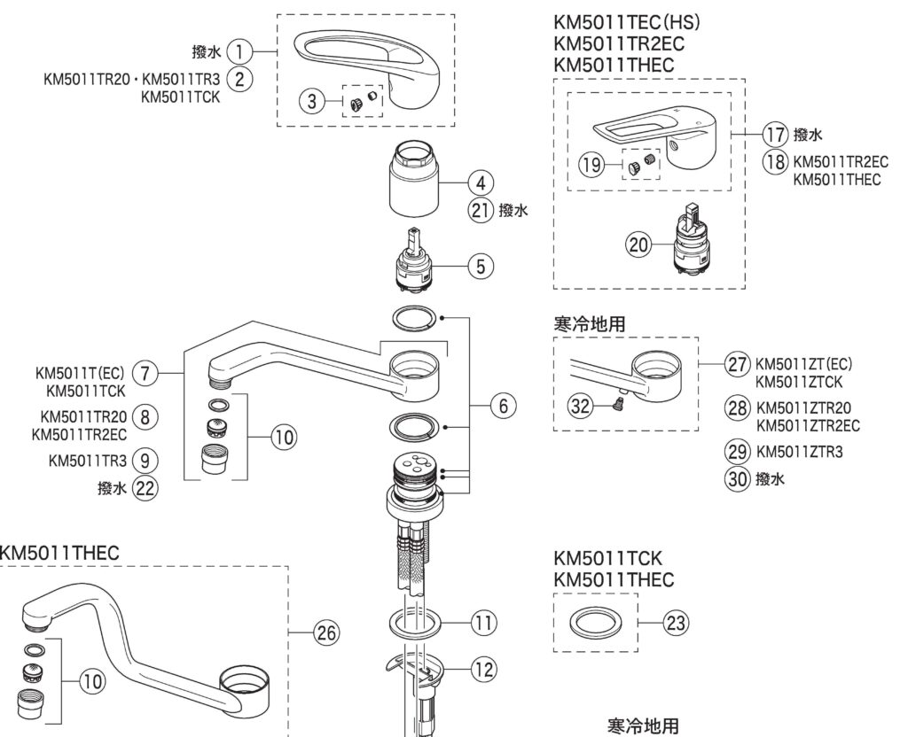 吐水パイプからポタポタ落ちる場合は、⑤番の交換が必要です。