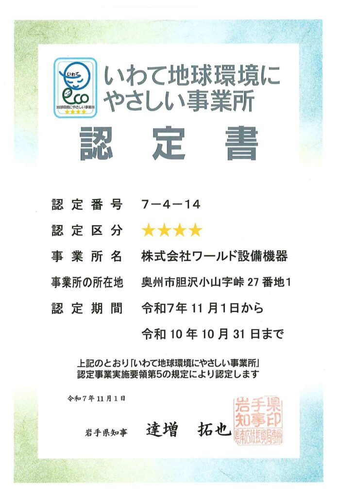 株式会社ワールド設備機器は、資源豊な環境を持つ肥沃な大地である、奥州地域に於いて、建設活動を行っております。